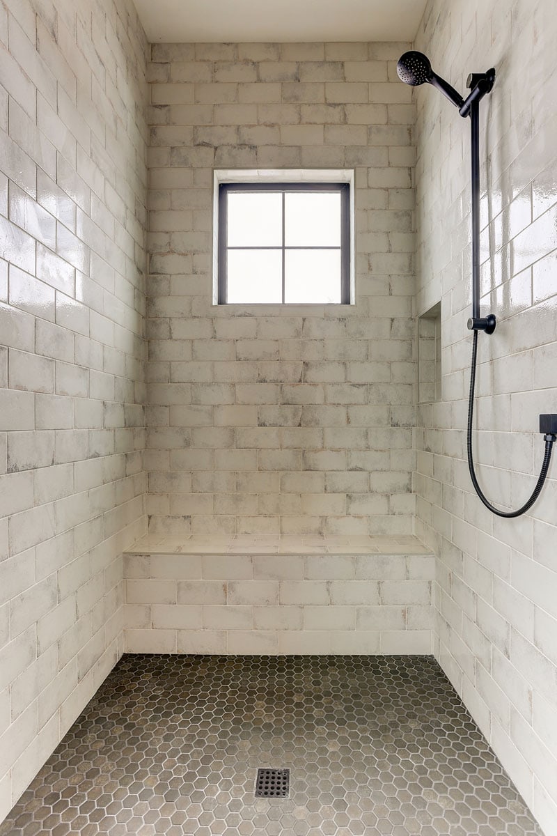 We used natural stone throughout to integrate the home’s natural surrounds.